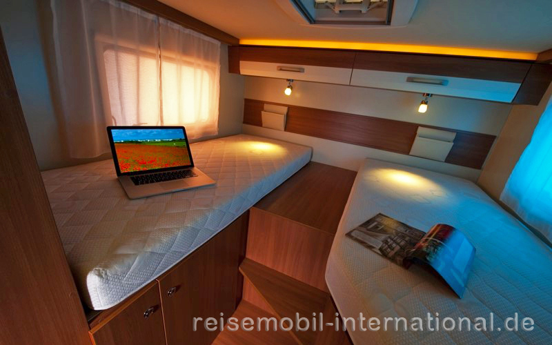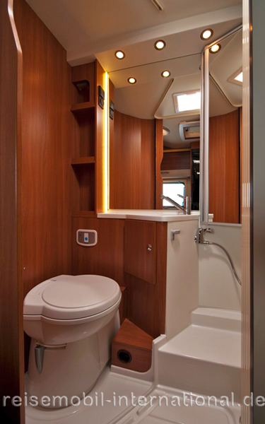 Die teilintegrierten Reisemobile der Baureihe Profila ergänzt Eura Mobil in der neuen Saison durch eine Modellreihe komplett in Leichtbauweise, gekennzeichnet durch den Namenszusatz „One“. Dem Profitest stellt sich der Eura Mobil Profila One 690 EB, ein 6,99 Meter langes Reisemobil auf Fiat-Ducato-Basis, das ab 47.890 Euro erhältlich ist. Das Testfahrzeug, aufgerüstet mit zahlreichen Extras wie stärkerem Motor, Auflastung auf 4,25 Tonnen, den Fahrerhauspaketen 1, 2 und 3, Panorama-Dachfenster und mehr kommt auf 61.615 Euro. Der Grundriss bietet „zwei Längs-Einzelbetten im Heck, davor stehen sich Bad und Winkelküche gegenüber. Im Bug formiert sich die Sitzgruppe aus Sitzbank, seitlich angeschlagenem Tisch und den drehbaren Vordersitzen.“ Der Aufbau hinterlässt einen „positiven Eindruck“ bei den Testern. Die vorgehängten Fenster und die einfache, schmale, fensterlose Aufbautür mit 51 Zentimetern Breite „weisen den Profila als Einsteigermodell aus.“ Innen gefallen das „helle Ambiente“, das „solide Mobiliar“ und das „besonders großzügige Raumgefühl“. Der für zwei Reisende ausgelegte Eura Mobil Profila One 690 EB kann optional mit einem Hubbett ausgestattet werden und damit für vier Personen eine Schlafstatt bieten. Die Winkelküche hinter der Sitzbank „erfüllt mit elektrisch zündendem Herd, großer Spüle mit hoch aufragendem Wasserhahn, 142-Liter-Kühlschrank, gutem LED-Licht und genügend Stauraum durchaus die Anforderungen an ein Reisemobil der Mittelklasse.“ Das „kompakte Bad“ nutzt eine Gliedertür, die komplett abgerollt gleichzeitig als Teil der Duschkabine dient. „Auf der drehbaren Kassettentoilette haben auch groß gewachsene Camper Platz“. Mit LED-Spots und LED-Lichtleiste ist das Bad „schön hell ausgeleuchtet“. Das Schlafzimmer im Heck ist über zwei Stufen erreichbar. Die beiden Matratzen der Einzelbetten sind „bequem“ und liegen auf Holzlattenrosten auf. Stauraum findet sich im Eura Mobil Profila One 690 EB im Kleiderschrank unter den Fußenden der Betten sowie in zahlreichen Oberschränken, in der „geräumigen Heckgarage“ und im Bodenfach unter dem Tisch der Sitzgruppe. Die Profis finden bei dem Teilintegrierten aber auch einige Schwächen: So sind die Gasabsperrhähne „schlecht einsehbar“ in der Küche am Boden des Unterschranks platziert und bei gefülltem Schrank schwer erreichbar. Die Gliedertür lässt sich für das Duschen „nicht sauber schließen“, so dass leicht Wasser durch den Spalt auf das Holz des Waschtischs gelangt. Bei den Betten bemängeln die Tester die „leicht verrutschenden Matratzen“ und die fehlende Möglichkeit, die Betten zu einem Doppelbett zu erweitern. Nicht zuletzt sind die „umständlich“ erreichbaren Kleiderschränke und die Heckgarage nicht beleuchtet. Demgegenüber punktet der Eura Mobil Profila One 690 EB durch sein „ausgesprochenes Leichtgewicht“ mit „üppiger Restzuladung“ auch als 3,5-Tonner und durch den „gut verarbeiteten holzfreien GfK-Aufbau“. In der Kategorie Teilintegrierte unter 60.000 Euro vergeben die Profis 129 von 200 möglichen Punkten.
