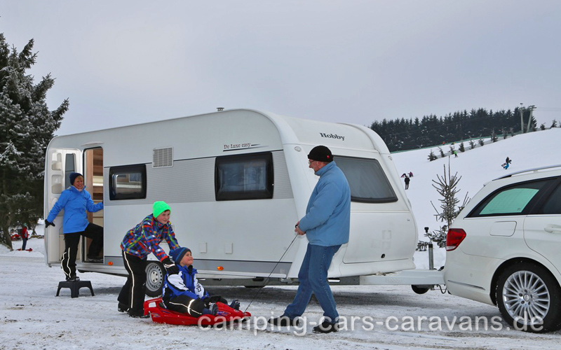 Der Wohnwagen Hobby De Luxe easy bringt je nach Grundriss zwischen 60 und 100 kg weniger Gewicht auf die Waage als die vergleichbare De Luxe-Modelle. Dem Profitest stellt sich der Hobby De Luxe easy 490 KMF mit einer Gesamtlänge von 6,99 Metern und einer Breite von 2,20 Metern. Äußerlich unterscheidet sich der Wohnwagen mit einem Grundpreis von 15.830 Euro nicht von den Vorjahrsmodellen der De Luxe-Reihe, „mit seinen Anbauteilen ist er unschwer als Hobby erkennbar.“ Der Grundriss, laut Tester ausreichend für „Familien mit zwei kleineren Kindern“, enthält ein quer gebautes Doppelbett im Bug, zwei Stockbetten im Heck und dazwischen Bad, Sitzgruppe, Küchenblock und Kleiderschrank. Gewicht wird durch reduzierte Materialstärken im Aufbau und bei den Möbeln eingespart. Höhen und Tiefen zeigen sich auch im Möbelbau: Während das obere Stockbett mit einer „soliden Absturzsicherung“ punktet, ist die Unterkonstruktion des Bettkastens „sehr leicht ausgeführt“. Als „nette Idee“ bezeichnen die Tester, dass das untere Kinderbett aufstellbar ist und darunter Platz für Gepäck und zum Spielen entsteht. „Die Unterseite des Bettes dient dann als Maltafel.“ Die Möbelklappen sind sehr leicht, haben aber keine Anschlagpuffer. Im praktisch eingerichteten Küchenblock mit Dreiflammkocher schließen die breiten Auszüge nicht richtig und die Zargen hinter den hohen Schubladenfronten sind nur acht Zentimeter hoch. „Gestapeltes Staugut bleibt daher nicht sicher am vorgesehenen Platz“, monieren die Profis. Pluspunkte sind die programmierbare Beleuchtung und der große 140-Liter-Slimtower-Kühlschrank. Die Sitzgruppe fällt in Sitzbreite und –tiefe recht schmal aus, außerdem ist der Stauraum insgesamt recht knapp bemessen. Ablagemöglichkeiten gibt es aber ausreichend. Das Bad des Hobby De Luxe easy 490 KMF mit reichlich Schränken und Ablagen ist einwandfrei. Auf der Straße zeigt der Wohnwagen ein gutes und „unproblematisches“ Fahrverhalten. Das Urteil der Profitester über den Wohnwagen fällt insgesamt durchwachsen aus: Er erfüllt „im Wesentlichen die Standardanforderungen an einen Caravan, ohne besondere Highlights zu bieten.“ Die erreichte Leichtigkeit geht zu Lasten des Platzangebots, für vier Personen wird außerdem Auflastung auf 1.500 Kilogramm empfohlen. In den vier Kategorien Caravantechnik, Ausstattung, Ergonomie und Fahrstabilität erhielt das 15.977 Euro teure Testfahrzeug 1.019 von 2.500 möglichen Punkten. In der neuen Euro-pro-Punkt-Wertung liegt der Hobby De Luxe easy 490 KMF bei 15,68 Euro.