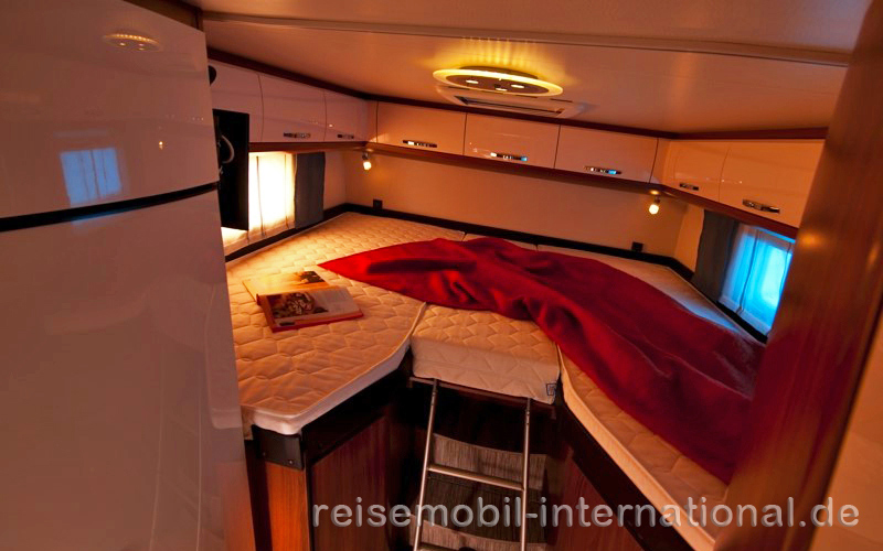 Dem Test stellt sich das Wohnmobil Hobby Optima T 65 GE mit einer Länge von 7,03 Metern. Dieses Modell ist Längsbetten im Heck für zwei Reisende ausgelegt und ab einem Grundpreis von 48.990 Euro erhältlich. Ausgestattet mit stärkerem Motor, Fiat-Chassis-Paket, Hobby-Starter-Paket und weiteren Extras kommt es auf 63.365 Euro. Der Teilintegrierte baut auf dem Fiat Ducato mit Werkstiefrahmenchassis, breiter Spur und Heckabsenkung auf. Dach und Sandwichboden sind aus verrottungsfreiem Glasfaser verstärktem Kunststoff GfK gefertigt, die Aufbauwände bestehen aus Alu-Sandwich und Holz. Von außen bietet der Hobby Optima T 65 GE dank seiner flachen Dachhutze, gerader Linien und nur 277 Zentimetern Fahrzeughöhe eine „schnittige Silhouette“. Ein Pluspunkt ist die „extrabreite Hartal-Aufbautür“ mit „zwei Schlössern, Fenster und Abfalleimer“ auf. Das Interieur gefällt ebenfalls: Der Wohnbereich ist „großzügig dimensioniert“, weiß beklebte Möbelklappen und hellbraunes Mobiliar wirken „solide und elegant zugleich“. Der Grundriss ist klassisch: Hinter den drehbaren Fahrerhaussitzen im Bug, Tisch, Sitzbank und seitlichem Einzelsitz schließen Längsküche mit Kühlschrank und auf der Fahrerseite das Bad an. „Die 83 Zentimeter breiten Einzelbetten im Heck belegt Hobby mit Holzlattenrosten und zwölf Zentimeter dicken Kaltschaummatratzen“. Ein Zusatzpolster verbindet die Betten bei Bedarf zu einer großen Liegewiese. Das Wohnmobil Hobby Optima T 65 GE verfügt über ein „geräumiges Längsbad“ mit hölzernem Waschtisch und großem Spiegelschrank. Die Duschkabine kann mit Lamellen-Schiebetür und Klapptür vom restlichen Bad „größtenteils“ abgetrennt werden. Gegenüber fassen im Küchenblock vier große Schubladen unter dem elektrisch zündenden Dreiflammkocher viele Utensilien, der Slimline-Kühlschrank daneben hält die Vorräte frisch. Stauraum ist in 15 Oberschränken, Kleider- und Wäscheschrank sowie der von beiden Seiten zugänglichen „voluminösen“ Heckgarage reichlich vorhanden. „Gelungen“ ist auch das ausziehbare Schuhfach unter der Längsbank. „Auch in Sachen Elektroinstallation macht das Testmobil eine gute Figur“, befinden die Profis. Neben der „hellen und ausgewogenen Wohnraumbeleuchtung“ ausschließlich in LED Technik punktet vor allem die BUS-Technologie, die die Kontrolle und Steuerung aller Geräte im bordeigenen Netzwerk über das zentrale Bedienpaneel ermöglicht. Unkritisch zeigt sich das Wohnmobil Hobby Optima T 65 GE auch bei der Fahrt. Der Neuling in der Mittelklasse erntet nur wenig Kritik: Der Toilettenschacht, eine Eigenkonstruktion aus Holz, ist nicht nach unten abgedichtet, die Arbeitsfläche auf dem Küchenblock „knapp bemessen“ und teilweise wurden scharfkantige Metallschließbleche eingesetzt. Als „hochwertiges Mittelklassemodell“ mit „moderner“ technischer Ausstattung, „nützlichen Details“ und „ausgewogenem Preis-Leistungsverhältnis“ entlassen die Profis den Hobby Optima T 65 GE aus dem Test. In der Kategorie Teilintegrierte unter 60.000 Euro vergeben die Profis 131 von 200 möglichen Punkten.