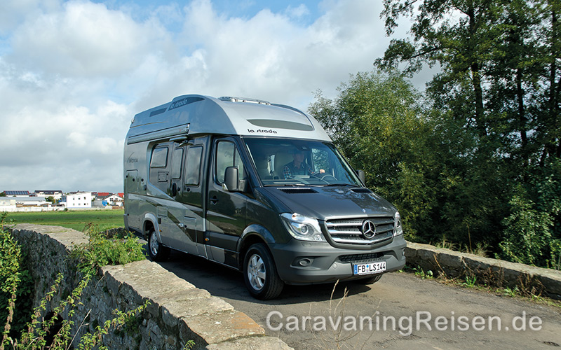 Der la strada Nova M besticht mit moderner Optik und langlebiger GFK-Monocoque-Bauweise. Die Größe des Bades, die vollständige Ausstattung der Küche und die Heckgarage lassen leicht vergessen, dass es sich um ein teilintegriertes Wohnmobil mit nur 6,36 Metern Länge und 2,15 Metern Breite handelt. Einzig das Hubbett unter dem Dach ist ein Zugeständnis an die kompakten Abmessungen des Nova M. Die edle Einrichtung und der Fahrkomfort mit zugkräftigen und sparsamen Mercedes-Motoren haben natürlich auch ihren Preis. Etwa 88.000 Euro Grundpreis fallen für den noblen la strada Nova M an. Dafür ist das Technikpaket 1 und das Komfortpaket, die beim kleineren Bruder Regent noch Aufpreis kosten beim Nova M schon im Grundpreis enthalten. Mit einem beherzten Griff zur Sonderausstattung lässt sich dennoch die Schallmauer von 100.000 Euro durchbrechen. Wer jedoch in dieser Preiskategorie nach einem edlen, langlebigen und zugleich möglichst kompakten Wohnmobil sucht, wird um den la strada Nova M nicht herumkommen.