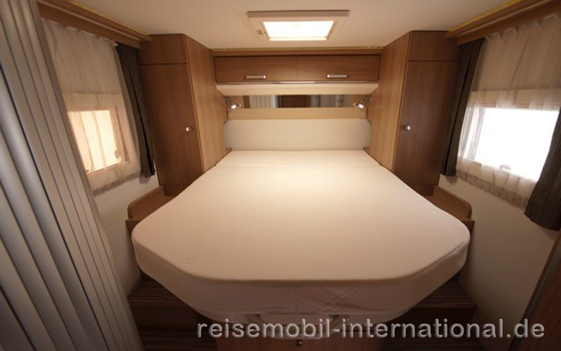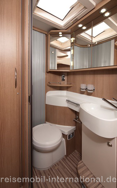 Das Wohnmobil Malibu I 440 ist auf dem Fiat-Ducato-Tiefrahmen-Chassis mit Breitspur-Achse aufgebaut. Der 6,99 Meter lange und 2,27 Meter breite Integrierte bietet vier Reisenden Platz und steht ab 70.450 Euro in der Preisliste. Der stärkere 148-PS-Motor sowie die Pakete Basic 1 und 2 mit Fahrerhaus-Klimaanlage, Tempomat, Slimtower-Kühlschrank, Rahmenfenstern, Panoramadachkuppe und mehr Extras heben den Preis für das Testfahrzeug auf 78.160 Euro. Damit bewegt sich der Malibu I 440 in der „gehobenen Mittelklasse“. Von außen ist die Herkunft aus dem Hause Carthago optisch klar erkennbar. Boden und Dach des Aufbaus bestehen aus „robustem GfK-Sandwich, die Wände sind außen mit Aluminium beplankt“. Im beheizten und isolierten Doppelboden finden der Abwassertank und Schuhfächer Platz. Die „wertigen“ PU-Rahmenfenster und die saubere Abdichtung der Durchbrüche komplettieren den guten Eindruck. Im Innenbereich präsentiert sich das Wohnmobil Malibu I 440 mit „nüchtern-eleganter“ Möblierung im „stilvollen Ambiente“. Im Heck befindet sich ein 195 mal 146 Zentimeter großes Queensbett mit aufstellbarem Kopfteil. Lattenrost und Matratze lassen sich für mehr Bewegungsfreiheit nach hinten schieben. Die zweite Schlafgelegenheit ist das manuell absenkbare Hubbett über den Fahrerhaussitzen mit Holzlattenrost und Mehrzonen-Kaltschaummatratze. Die Dusche und das Badezimmer „sind in das Heckschlafzimmer integriert“, sie liegen einander gegenüber. Mit „eleganten Holzmöbeln, großem Spiegelschrank, Waschtisch mit Unterschrank, großem Waschbecken und zahlreichen Ablagen“ überzeugt das Bad. Die Dusche mit Kuststoff-Klapptüren „bietet selbst kräftig gebauten Zeitgenossen noch ausreichend Bewegungsfreiheit“. Die „große Längsküche“ mit elektrisch zündendem Dreiflammkocher, „tiefer Rundspüle sowie sechs Schubfächern“ befindet sich gegenüber der Aufbautür. Auch Ablage- und Arbeitsfläche ist ausreichend vorhanden. Bis zu fünf Camper finden in der „gut ausgepolsterten“ Sitzgruppe um die bewegliche Tischplatte herum Platz. LED-Spots sorgen für die Beleuchtung, auch „spendiert Carthago dem Malibu genügend Steckdosen“. Stauraum befindet sich beim wintertauglichen Wohnmobil Malibu I 440 sowohl in der großen Heckgarage als auch im Bettstaukasten und den zahlreichen Oberschränken. Bei der Fahrt macht der Integrierte „eine gute Figur“. Er zeigt sich „wenig anfällig für Seitenwind“ und besitzt „gute fahrdynamische Eigenschaften“. „Wind-, Quietsch- und Knarzgeräusche sind absolute Mangelware“. Kritikpunkte finden die Profis nur wenige: Da die Zusatzpakete viel Gewicht mitbringen, sollte der Malibu I 440 für zwei Personen auf 3,65 Tonnen und für vier Reisende auf 4,25 Tonnen aufgelastet werden. Innen müssen die Camper aufpassen, sich an der Dachblende der Duschkabine nicht den Kopf zu stoßen. „Die beiden Stufen vor dem Heckbett stehen sehr nah beieinander“ und im Fahrerhaus sind die Sonnenblenden „zu klein ausgefallen“. Für die Profis besitzt das Wohnmobil „Carthago-typische Qualitätsmerkmale“ wie „hochwertigen Kabinenaufbau, Doppelboden und einen soliden Innenausbau“ zu einem „absolut ausgewogenen Preis-Leistungsverhältnis“. In der Kategorie Vollintegrierte unter 80.000 Euro vergeben die Profis 135 von 200 möglichen Punkten.