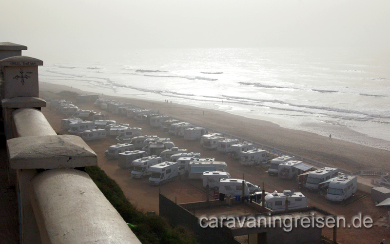 Sidi Ifni ist die erste Etappe an der Atlantikküste. Ein Küstenort mit Hotels und mehreren Campingplätzen direkt am weitläufigen Strand. Die weißen Häuser mit blau gestrichenen Türen und Fenstern prägen den Ort. Der ehemalige spanische Gouverneurs-Palast verrottet langsam vor sich hin, weil die internationalen Besitzrechte nicht geklärt sind. Schade um die historische Bausubstanz, deren verwitternde Reste noch die alte Pracht erahnen lassen. Die Wellen des Atlantiks sind eine angenehme Erfrischung nach den vielen Tagen in Sand-, Stein- oder Geröllwüsten. Die malerische Felsküste lädt ebenso zu ausgedehnten Strandspaziergängen ein.