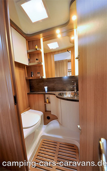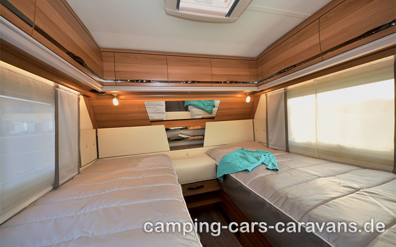 Der Testwagen Tabbert Vivaldi 560 E 2,5 ist sehr gut ausgestattet und der Grundriss ist die gängige Zweipersonenvariante mit Einzelbetten im Bug und normalem Küchenblock. Das Heck des 560 E nimmt eine große Rundsitzgruppe ein. Zweieinhalb Meter breit ist auch dieser 560er nicht unbedingt ein Reisewagen für Ungeübte, dafür gibt’s innen das enorme Raumgefühl, das eben nur maximal breite Caravans bieten können. Das patentierte Tabbert-Dach überzeugt mit einer Reihe wichtiger Vorzüge. Der wohl wichtigste ist die enorme Schalldämmung: Der Unterschied zwischen einem normalen, sandwichverpressten Standarddach und der mit 58 Millimetern fast doppelt so starken Tabbert Konstruktion ist nicht nur die solide Stabilität. Bei jedem Regen- oder Hagelschauer beträgt die Geräuschreduzierung durch Spezialvlies, Isolation und einer speziellen Trennschicht bis zu 9 Dezibel oder mehr, was ungefähr 1,5-mal leiser wirkt. Das heißt, man kann bei einem nächtlichen Regenguss praktisch ungestört weiterschlafen. Der Tabbert Vivaldi 560 E kostet serienmäßig 25.990 Euro und sieht man sich den Testwagen an, ist das ganz gewiss nicht zu viel. Der Blick oder vielmehr diverse Blicke in die Preisliste zeigen aber schnell, diese Klasse in der Mittelklasse hat ihren Preis. Rahmenfenster, Glattblech, Alufelgen, die Gürtelleiste mit Chrom, Deichselabdeckung und einiges mehr kosten in zwei Paketen knapp 2.300 Euro. Ein Soundsystem, die 12-Versorgung, Insektenschutztür, Tagesdecken und das Komfortschlafsystem gibt es für 749 Euro. Dazu noch die nötige Auflastung, ein Mover und noch einige Kleinigkeiten bringen den Testwagenpreis auf stolze 38.396 Euro.